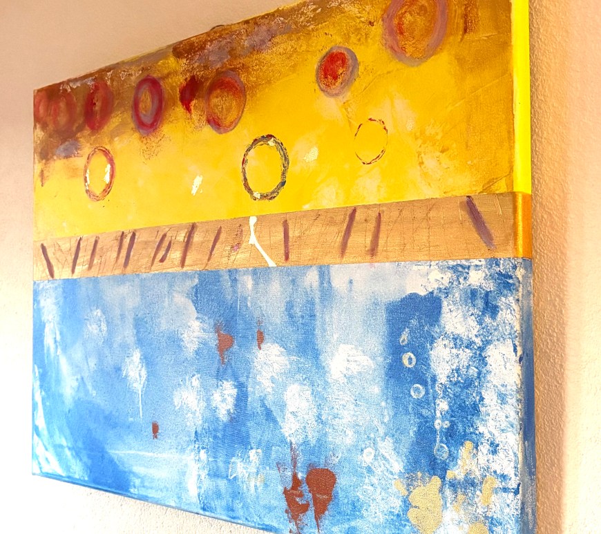 Luft und Wasser teilen sich durch den goldigen Horizont. Acryl auf Leinwand 70 x 50 cm Zwei Welten weiterlesen
